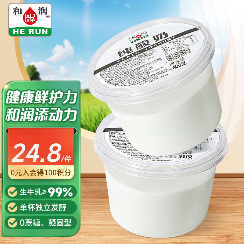 4、和润 纯酸奶 400g*2